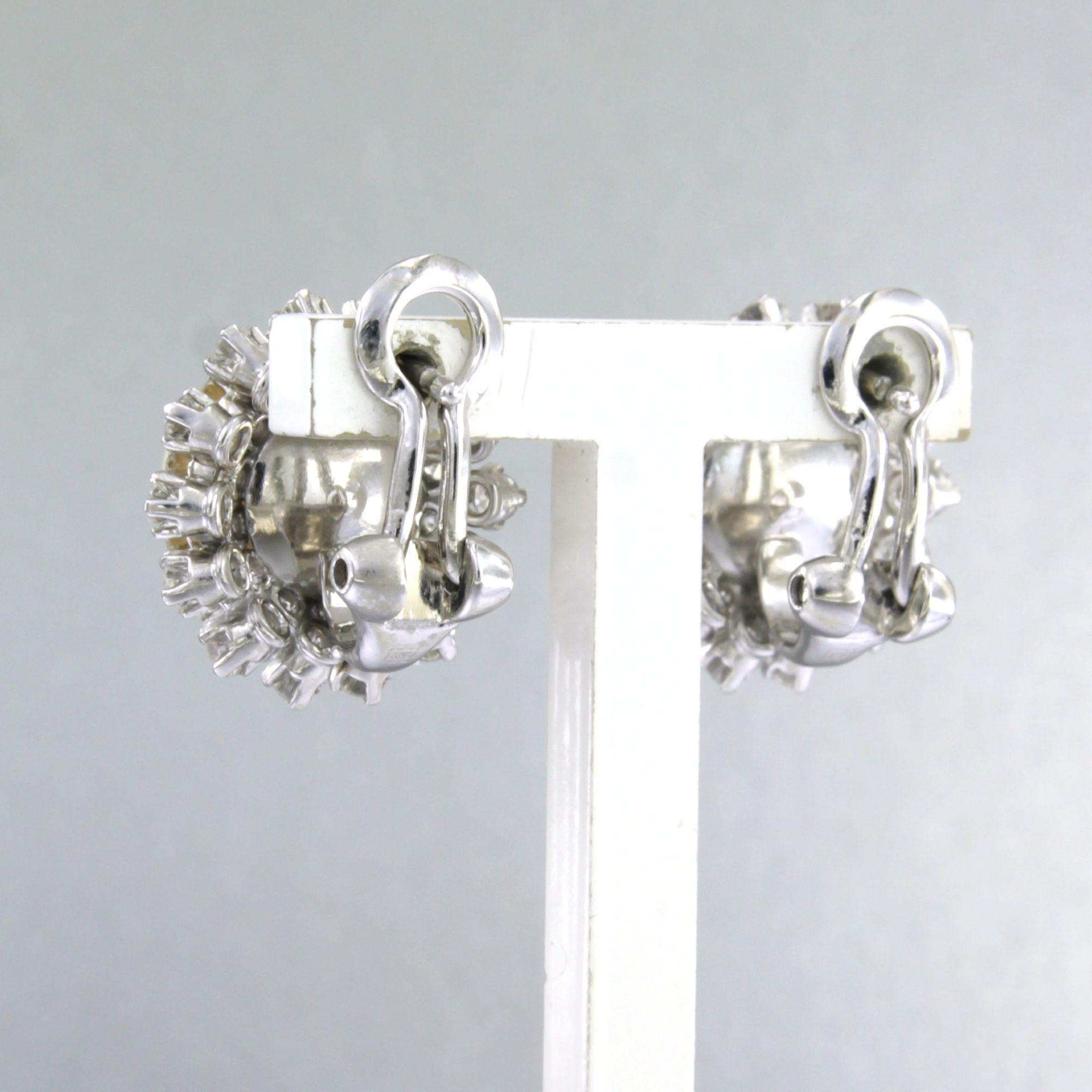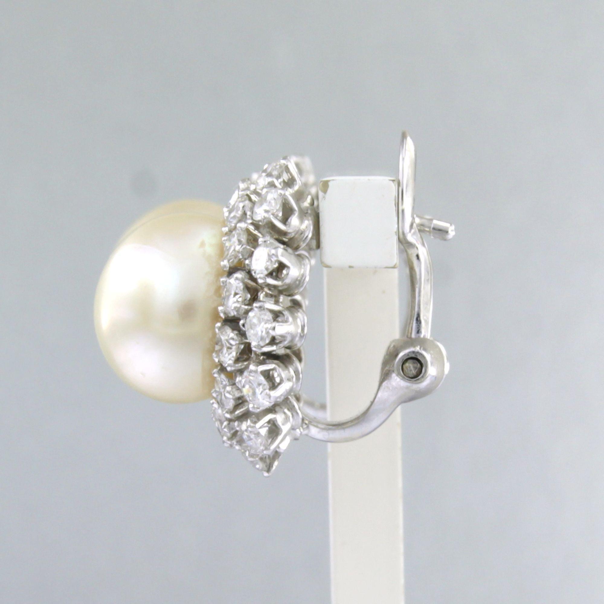 18 Kt. witgouden oorclips bezet met parel en briljant geslepen diamanten tot. 2.00 ct.