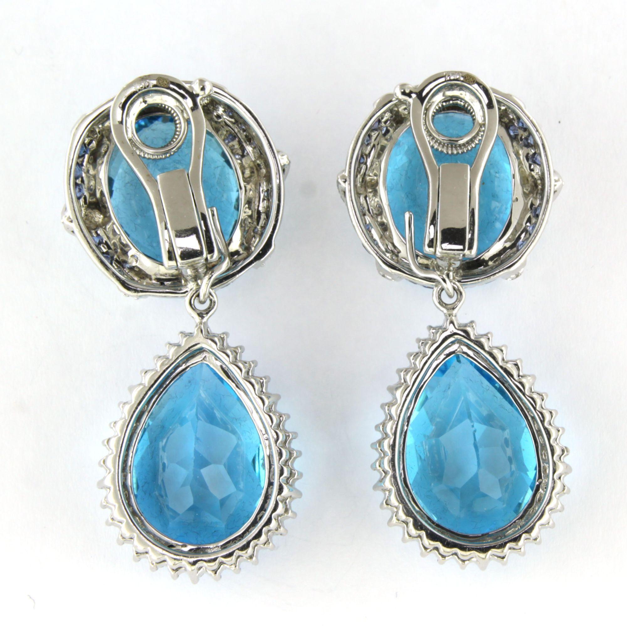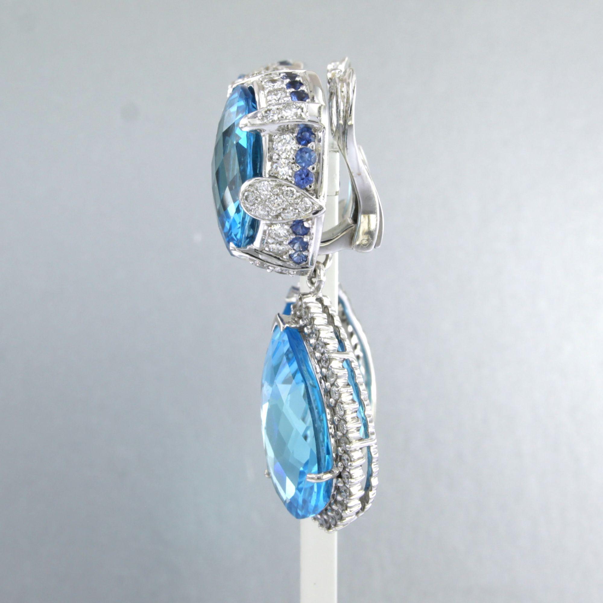 18 Kt. witgouden oorhangers bezet met topaas, saffier en briljant geslepen diamanten tot. 2.40 ct.