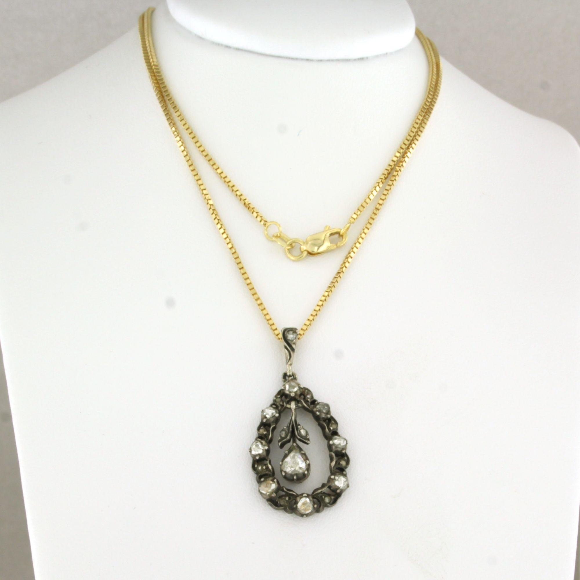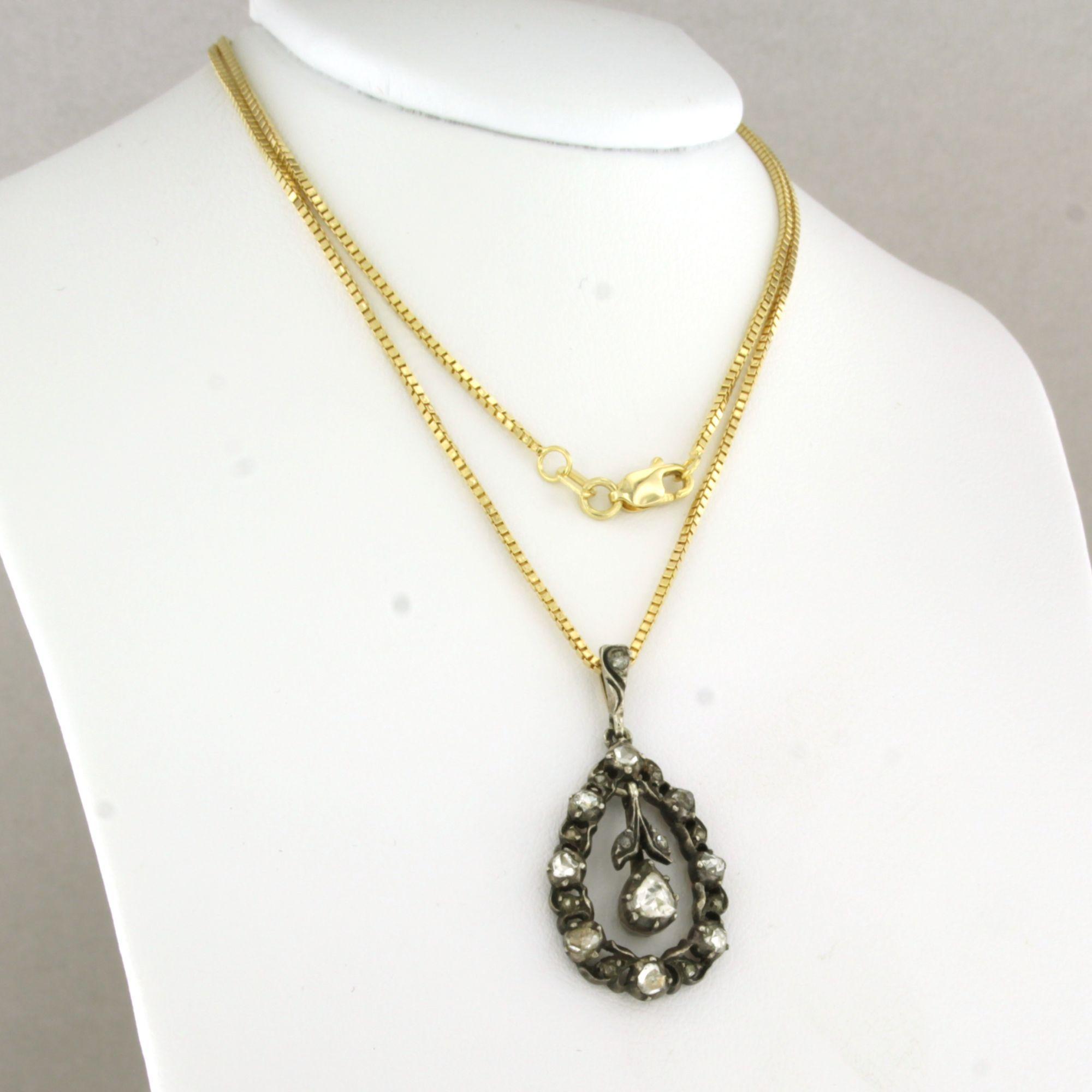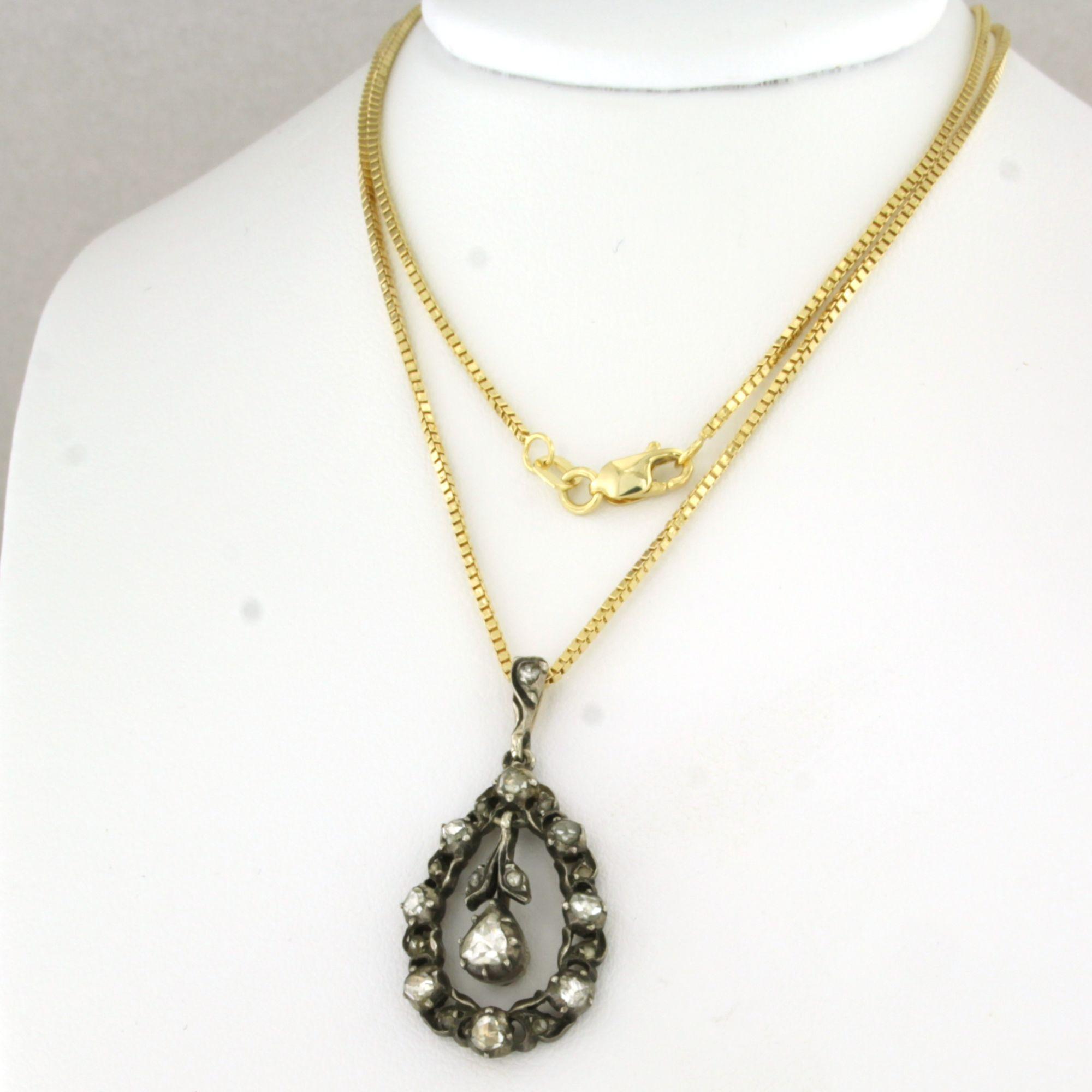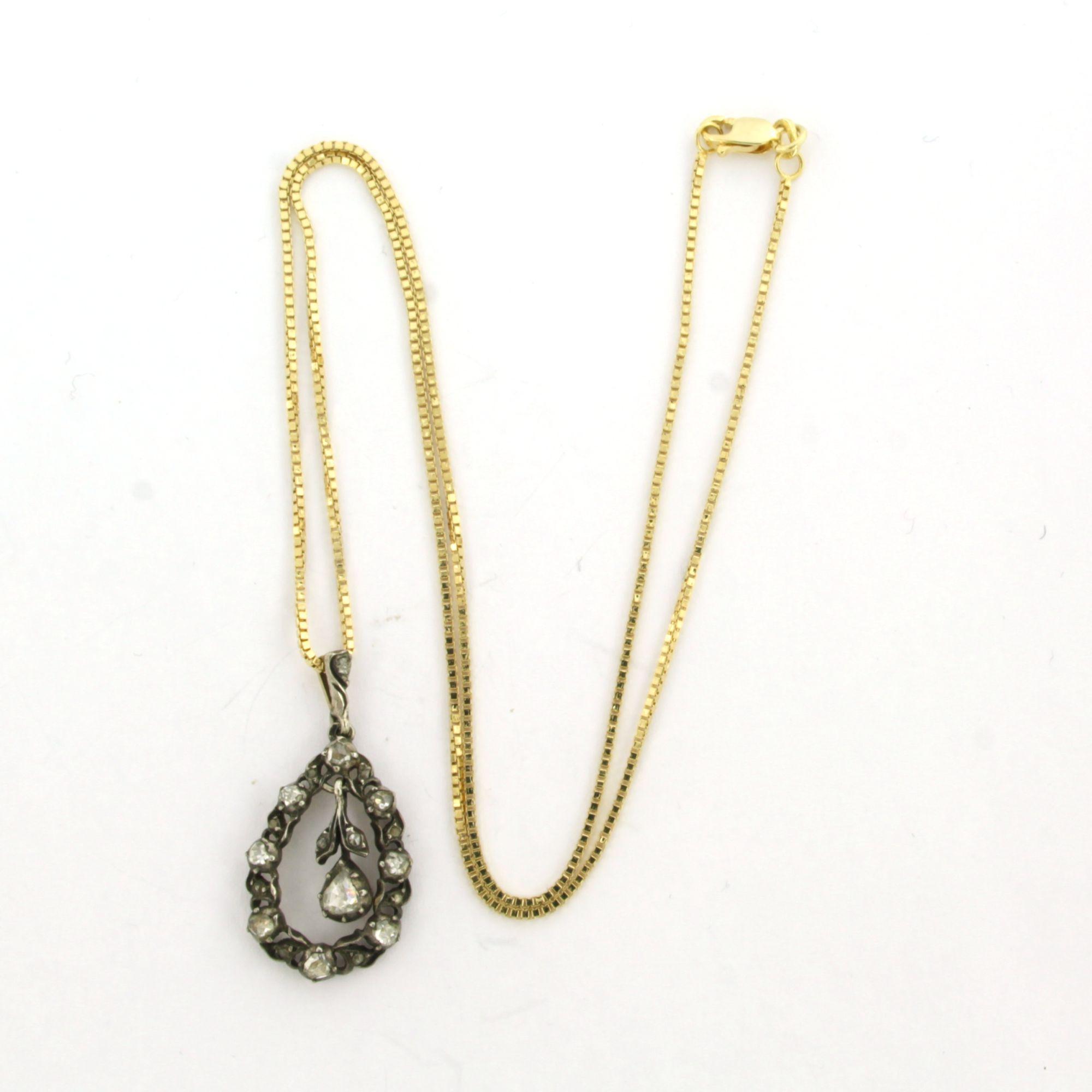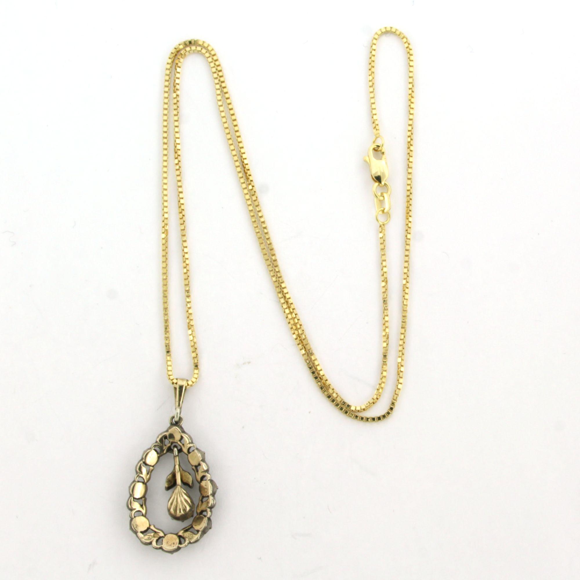 14 Kt. geelgouden collier met een gouden met zilveren hanger bezet met roosdiamanten tot. 0.25 ct.