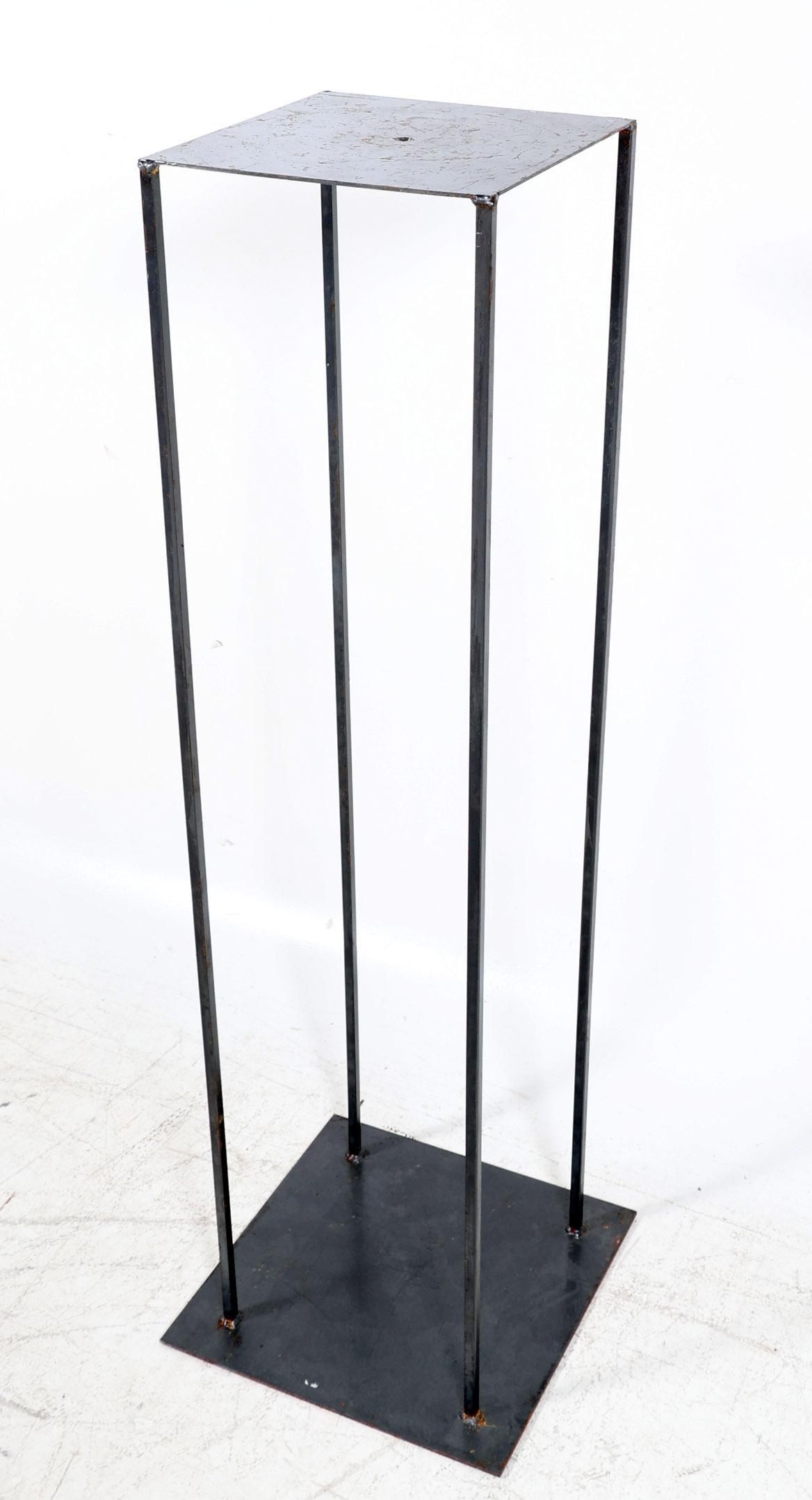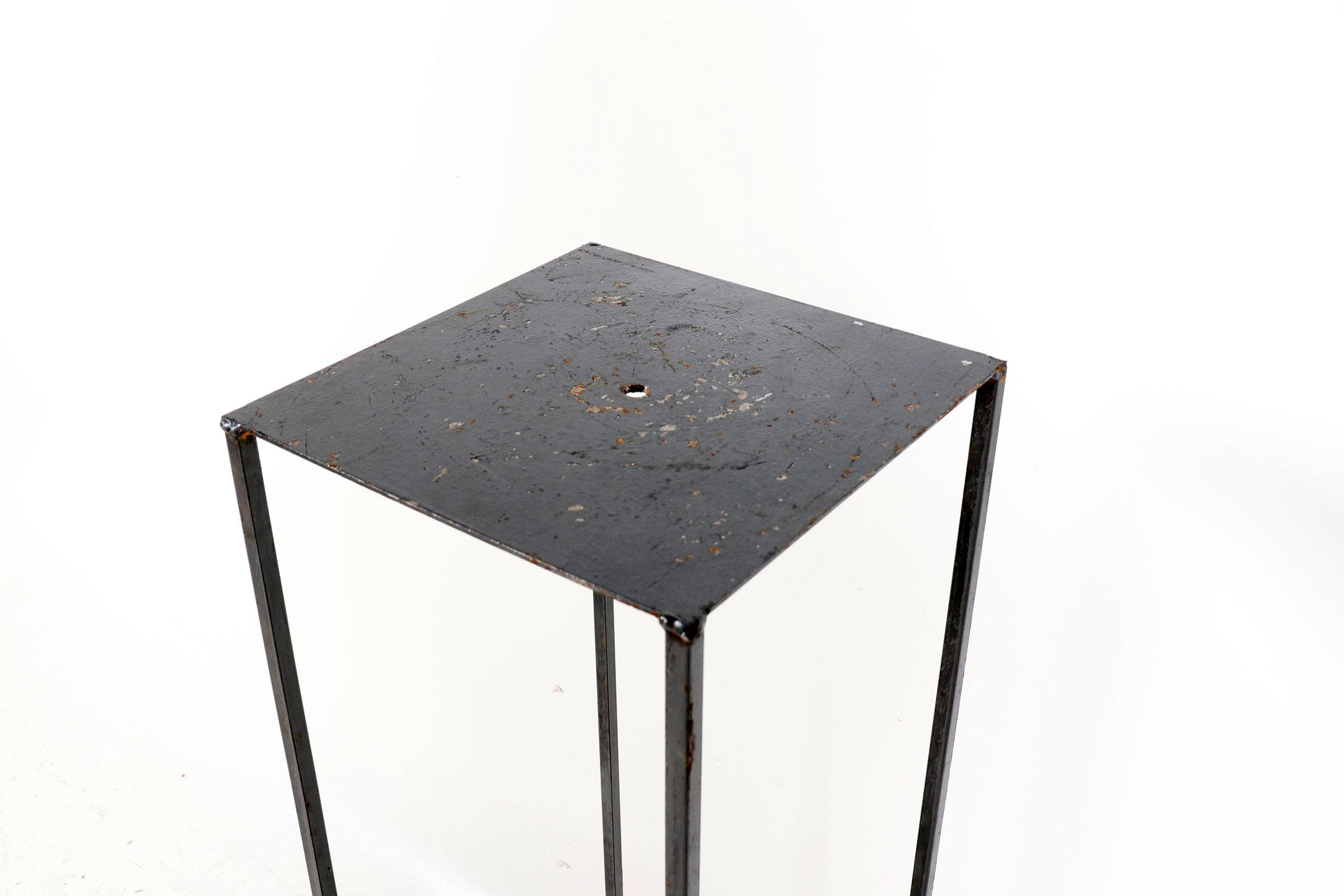 Grijs metalen sokkel, h.126 x b.30 x d.30 cm. (voetstuk 40 x 40 cm)