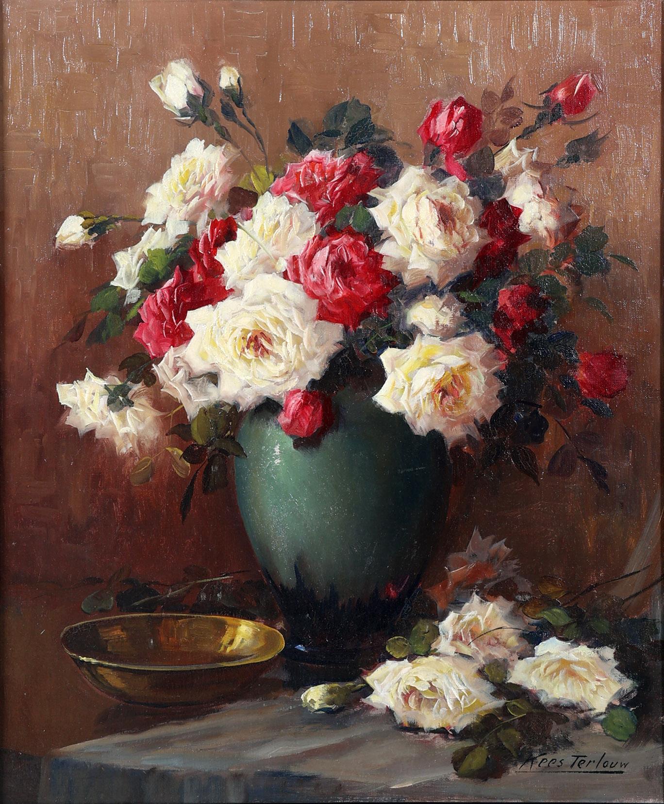 Cornelis (Kees) Terlouw (1890-1948 ), Bloemstilleven, olieverf op doek, 65 x 54 cm.