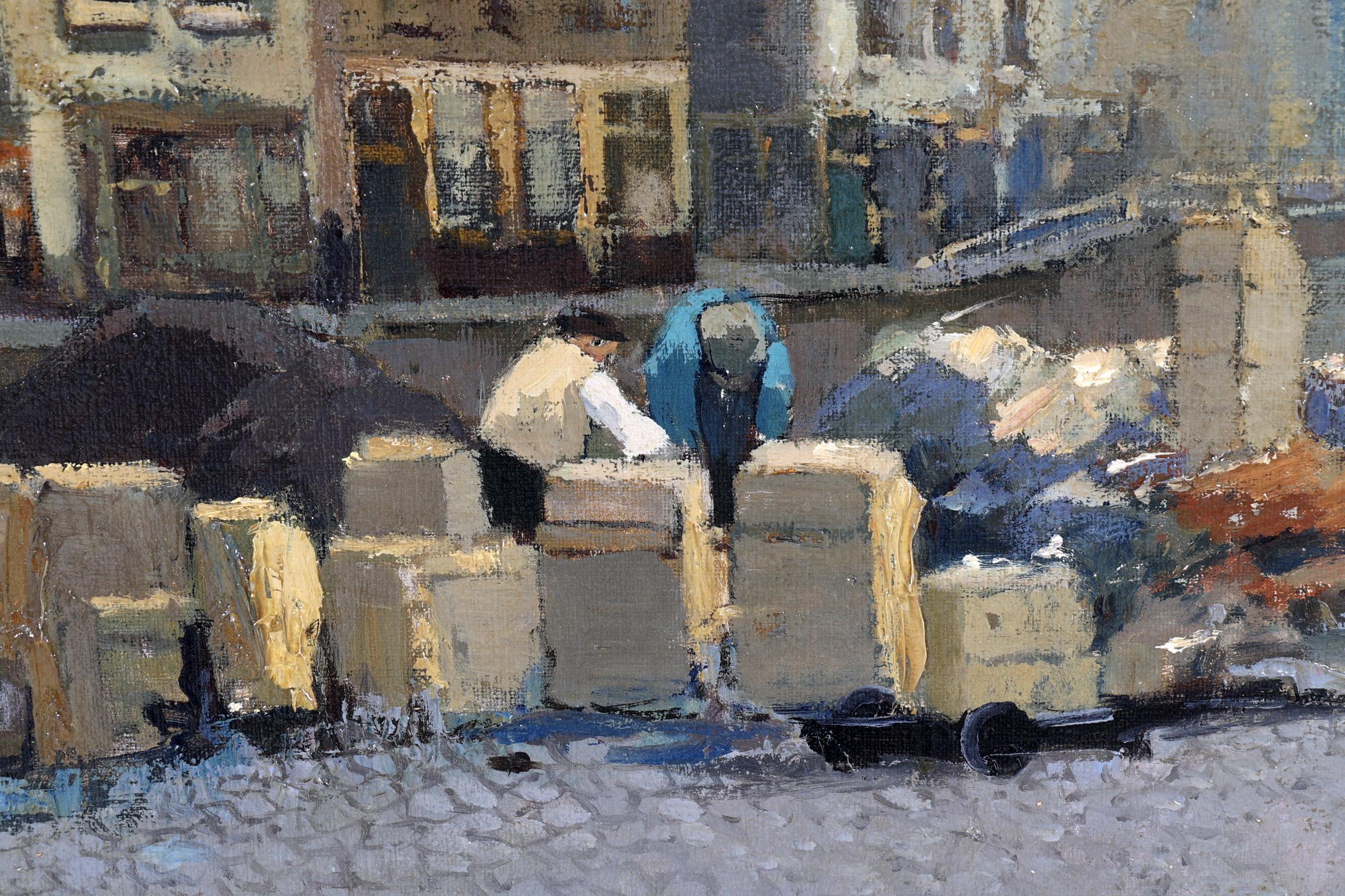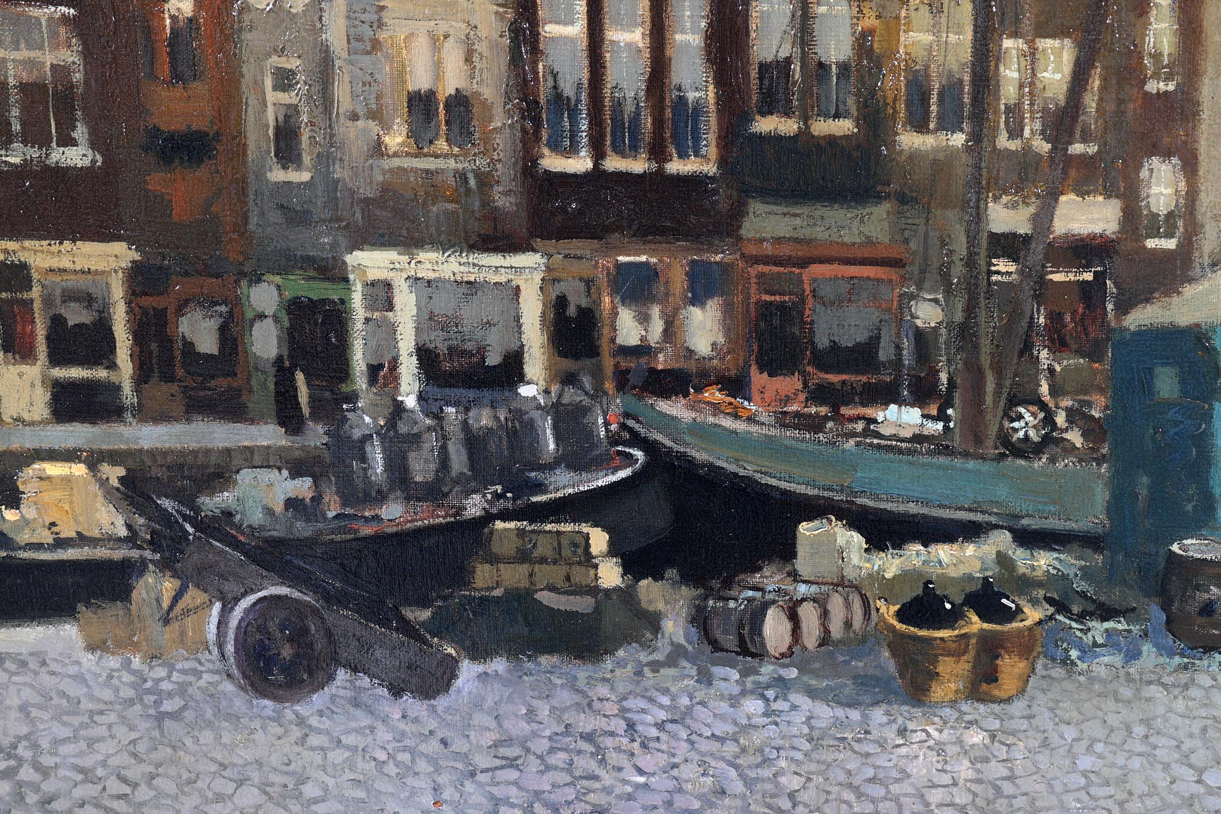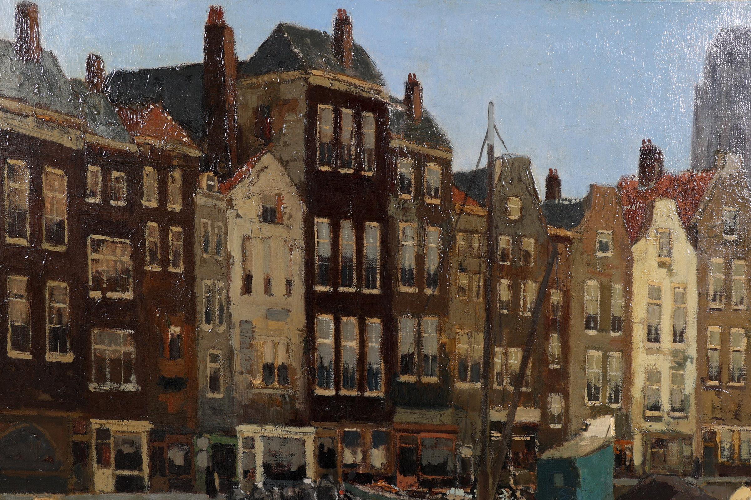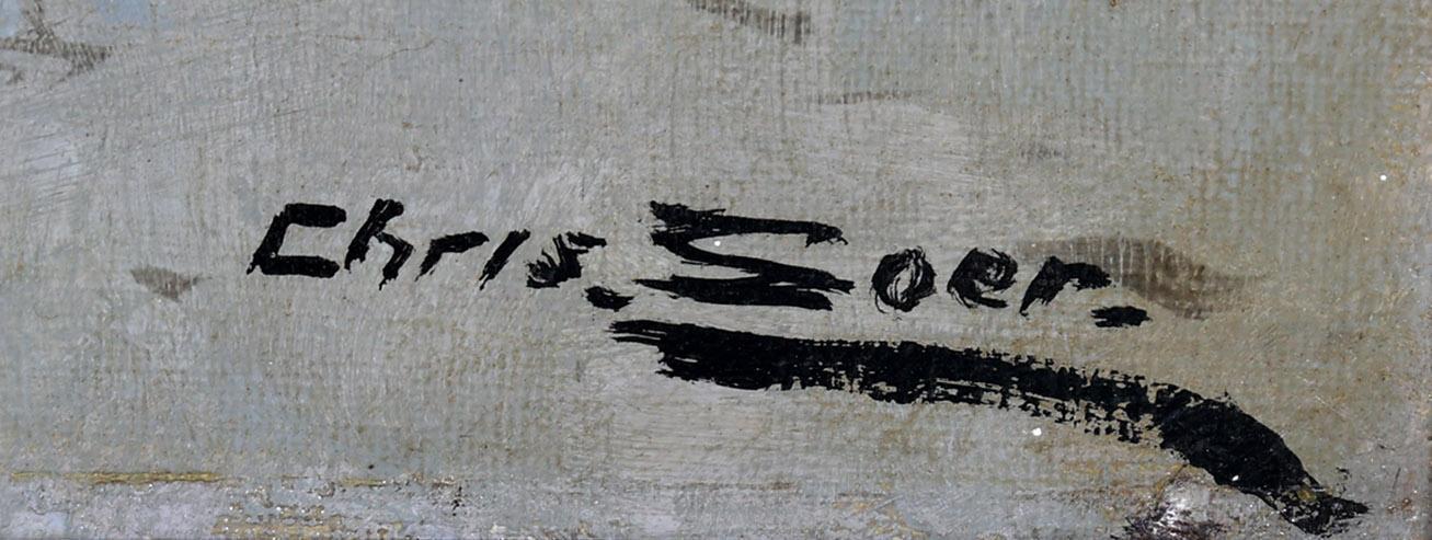 Christiaan (Chris) Soer (1882-1961), Zicht op de Rotterdamse binnenhaven met op de achtergrond Laurenskerk, olieverf op doek, 100 x 60 cm.