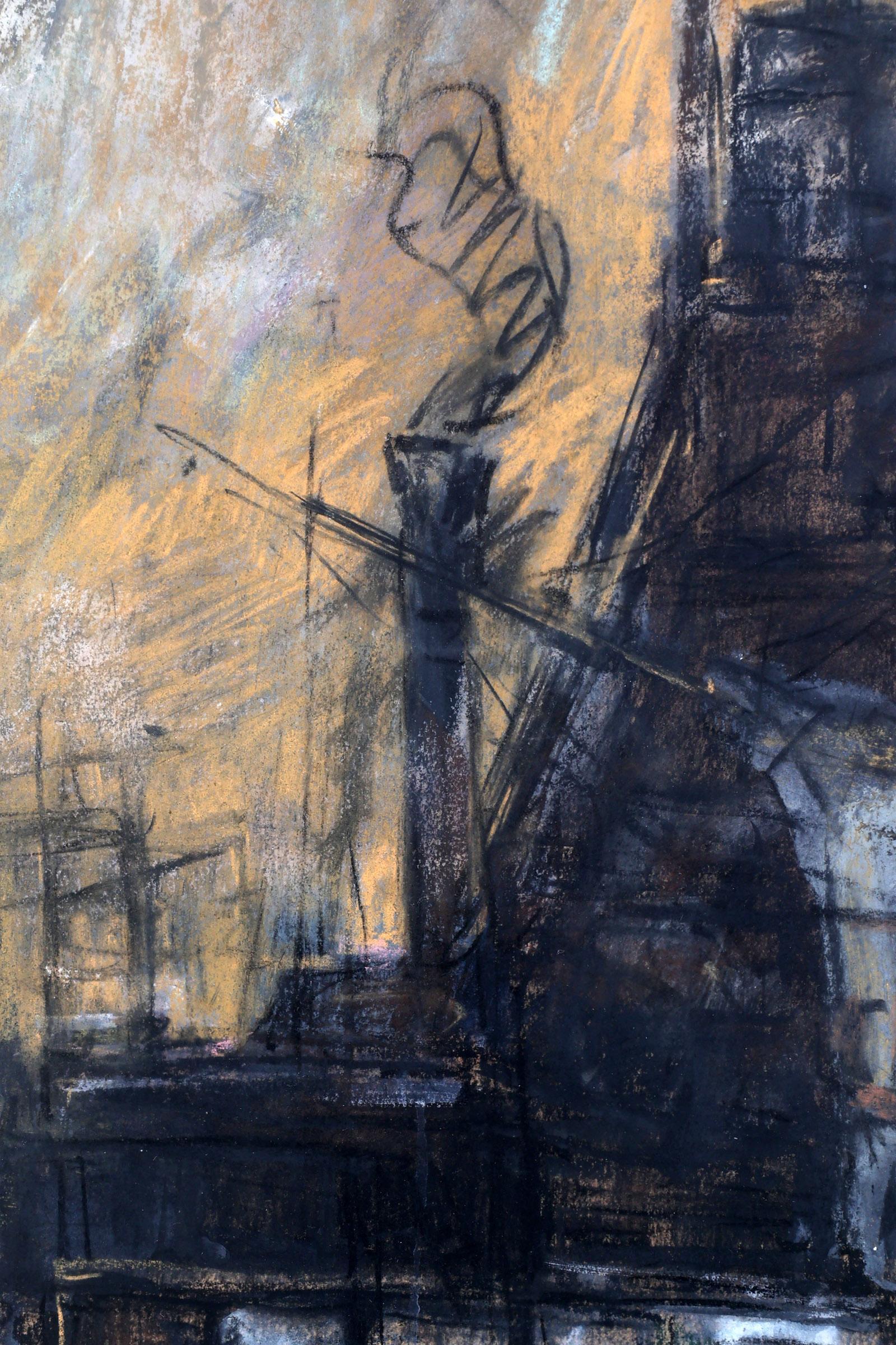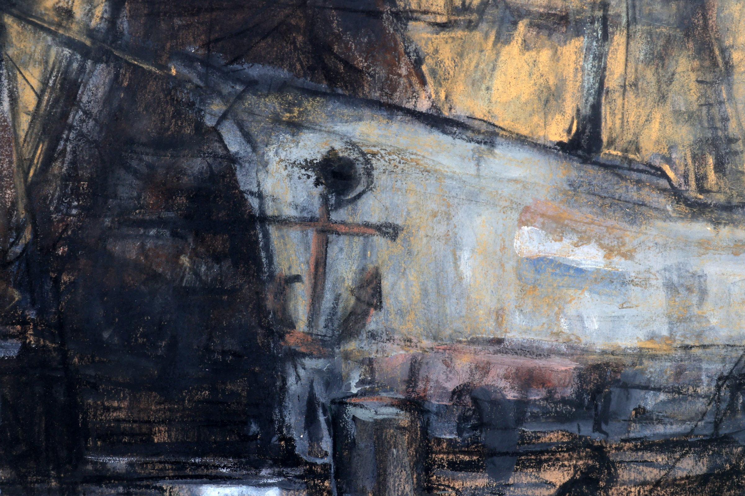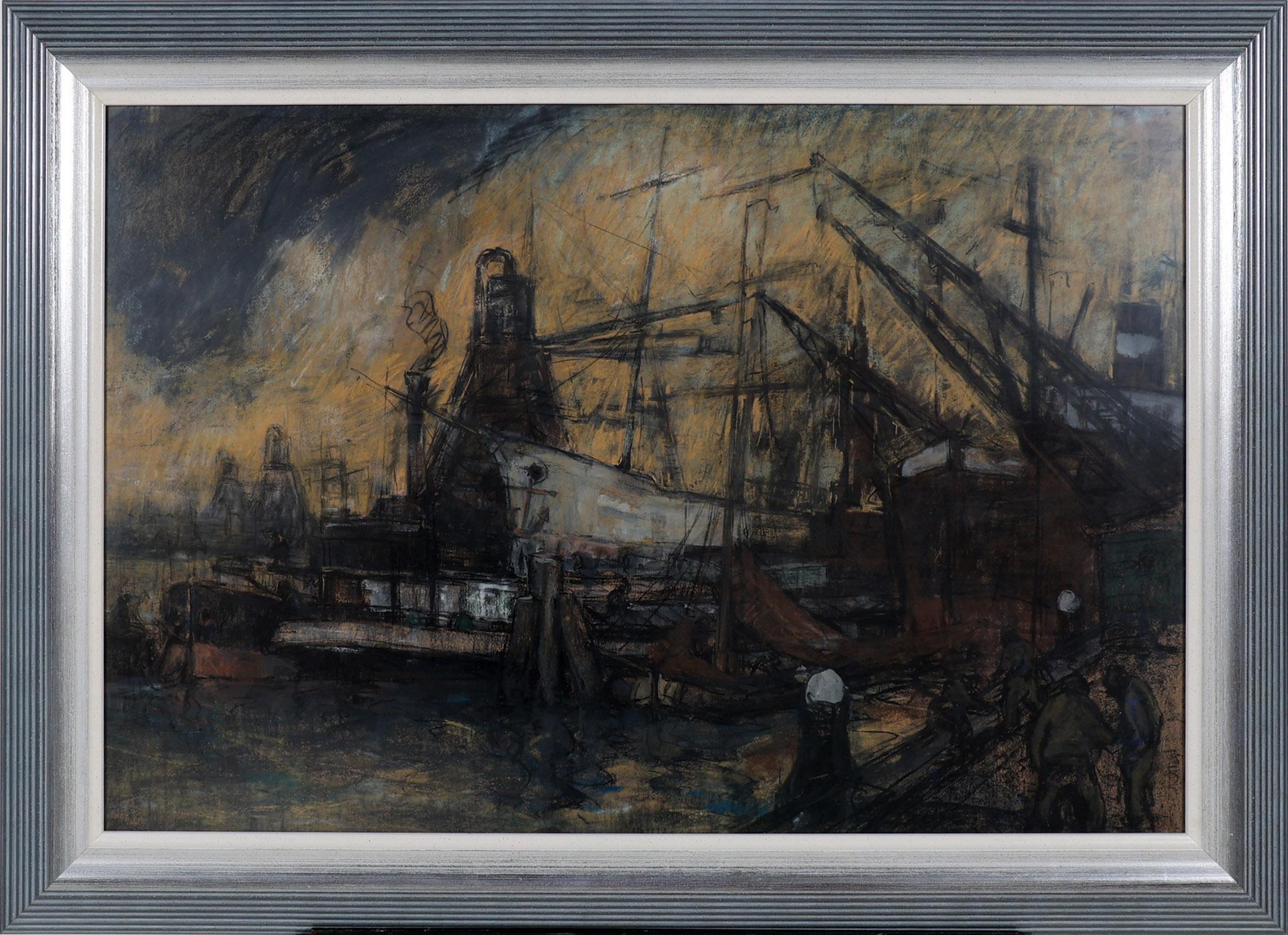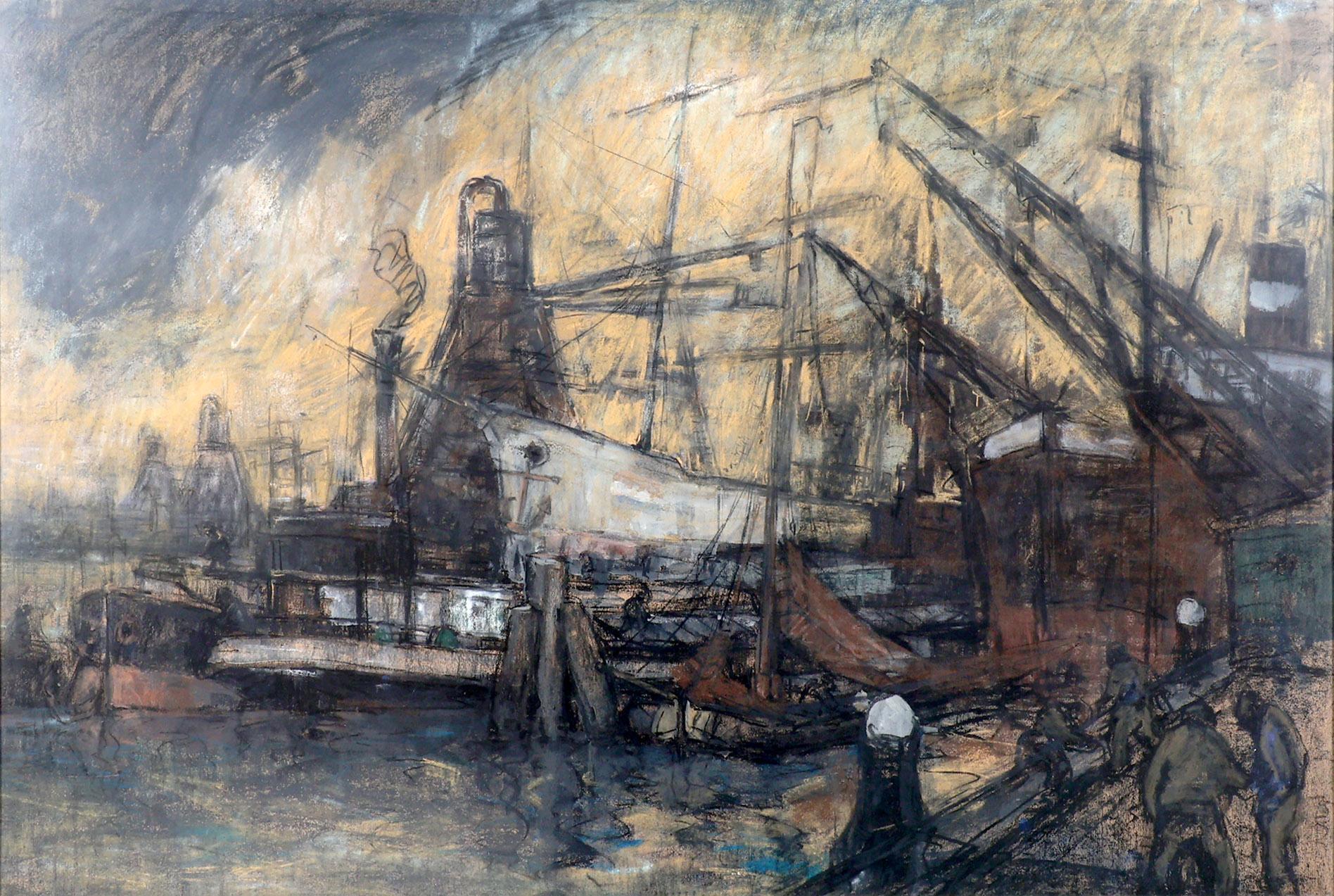 Onb.meester, Bedrijvigheid in de haven, gemengde techniek, 90 x 60 cm.